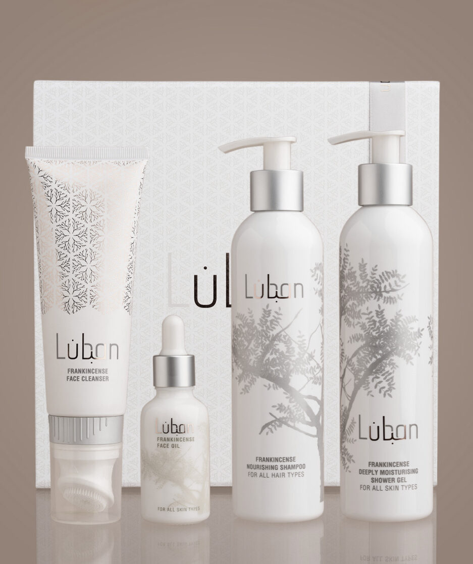 يضم بوكس الرجال أساسيات العناية للرجل من منتجات لبان – غسول الوجه، زيت الوجه، شامبو، وجل الاستحمام.